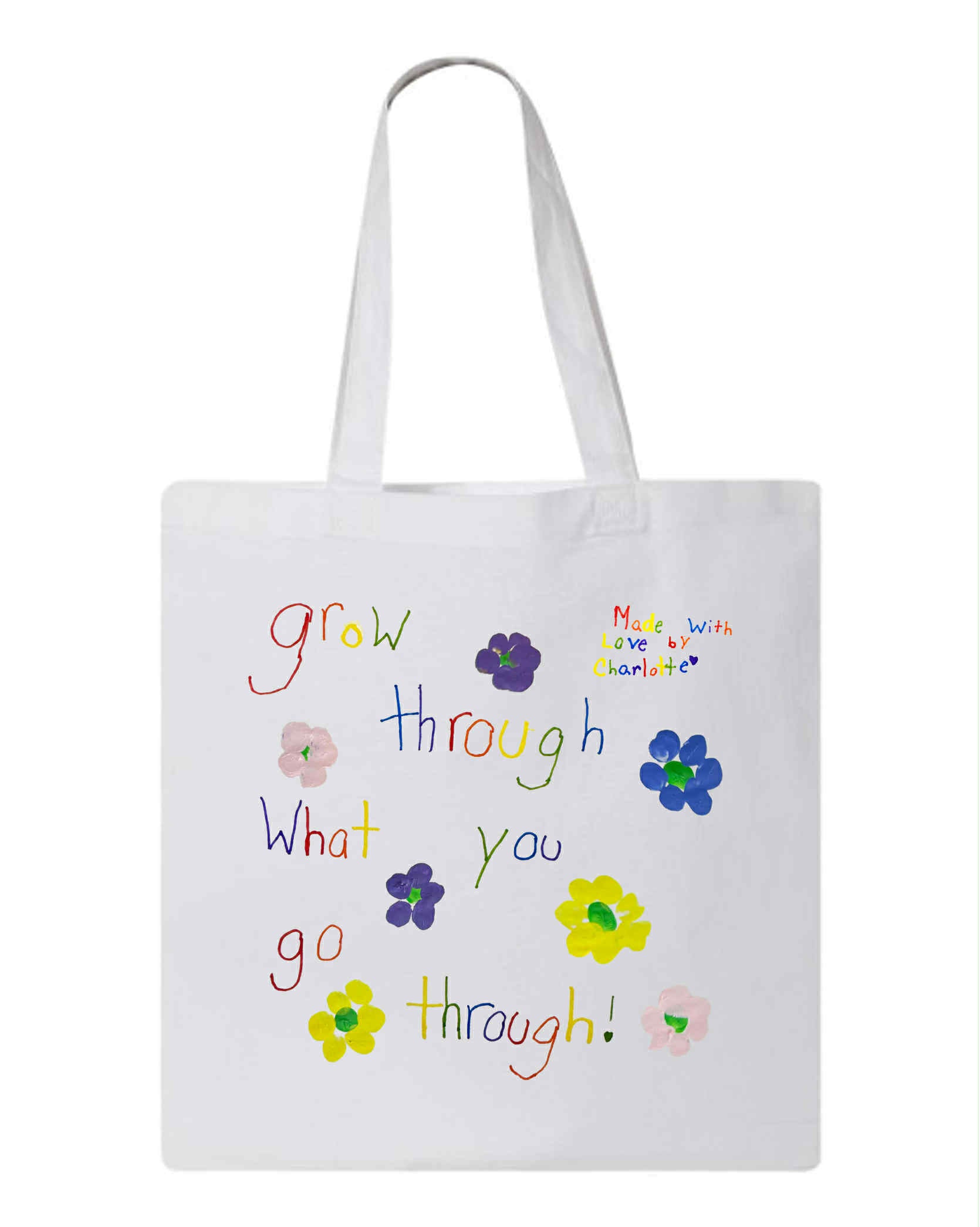 I’ve created special canvas tote bags featuring my unique "fingerprint flowers." You’ll notice my flowers have bright petals but no stems; that’s because I believe we can bloom brightly wherever we are planted! Every single penny raised from these bags goes directly toward buying toys, games, and activities to bring comfort to other pediatric cancer patients staying at the hospital. Thank you for helping me put smiles on their faces!